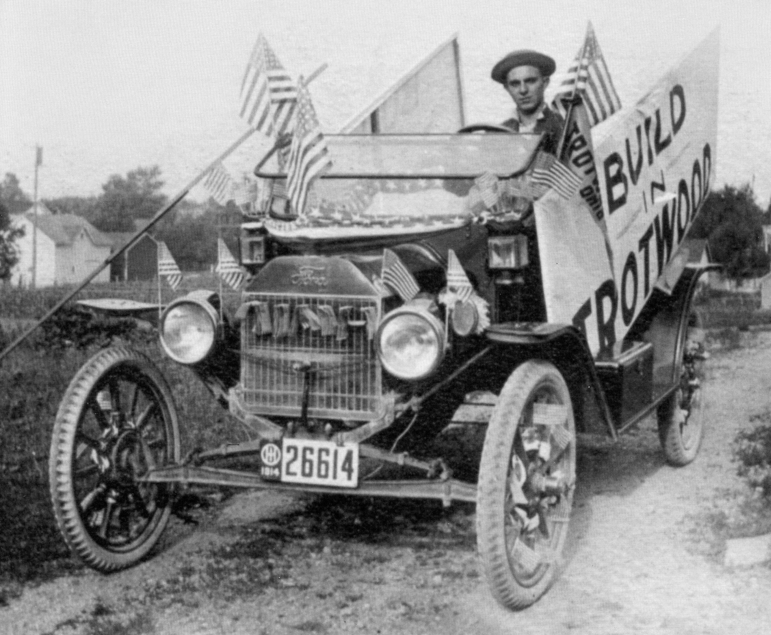 The first example of planned development occurred in 1898 when the village of Trotwood was platted by Robert Pleasant and Nathan Worley who later had streets named for them. Trotwood was incorporated March 15, 1901 and at that time included 124.33 acres. In the early 1900s civic and business progress continued. In 1902 telephone service was made available in town. Also by 1902, Trotwood was one of the first villages to have water service. The Farmers and Citizens Bank opened for business in 1909, and when Vaniman Ford opened in 1910 the Village of Trotwood's population was 348 people. In 1912 electric service first became available here. With the advent of the nation's depression, the Trotwood-Madison community suffered like the rest of the nation. And yet in 1932 another entrepreneurial milestone occurred when Trotwood Trailers opened as one of the first recreational vehicle manufacturers in the U.S. making travel trailers and later mobile homes.