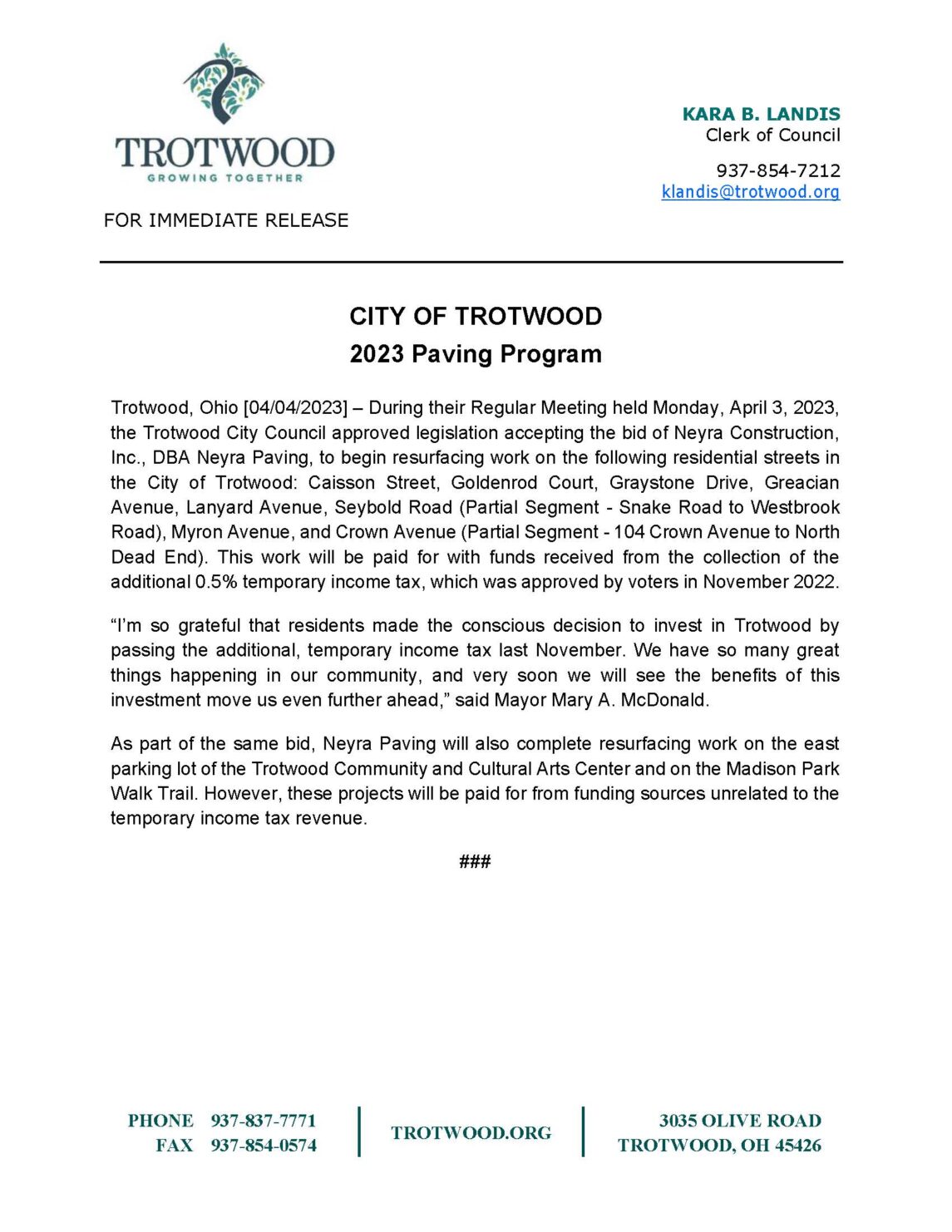 2023 PAVING PROGRAM Kara Landis April 4, 2023Community News < Prev PostBack to NewsNext Post > Share this Post