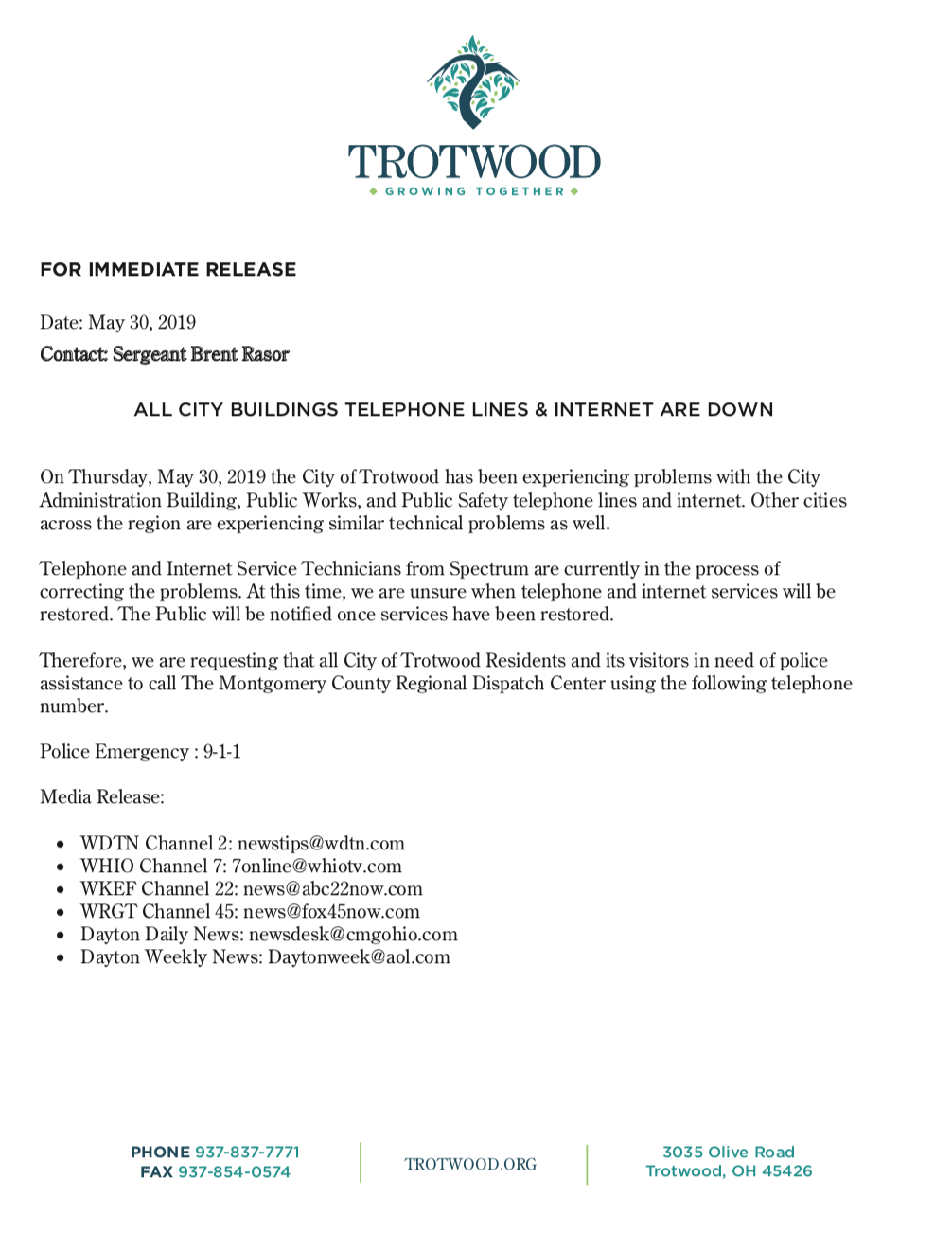All City Building’s Telephone Lines & Internet Are Down catapult May 30, 2019Community News, Tornado info < Prev PostBack to NewsNext Post > Share this Post