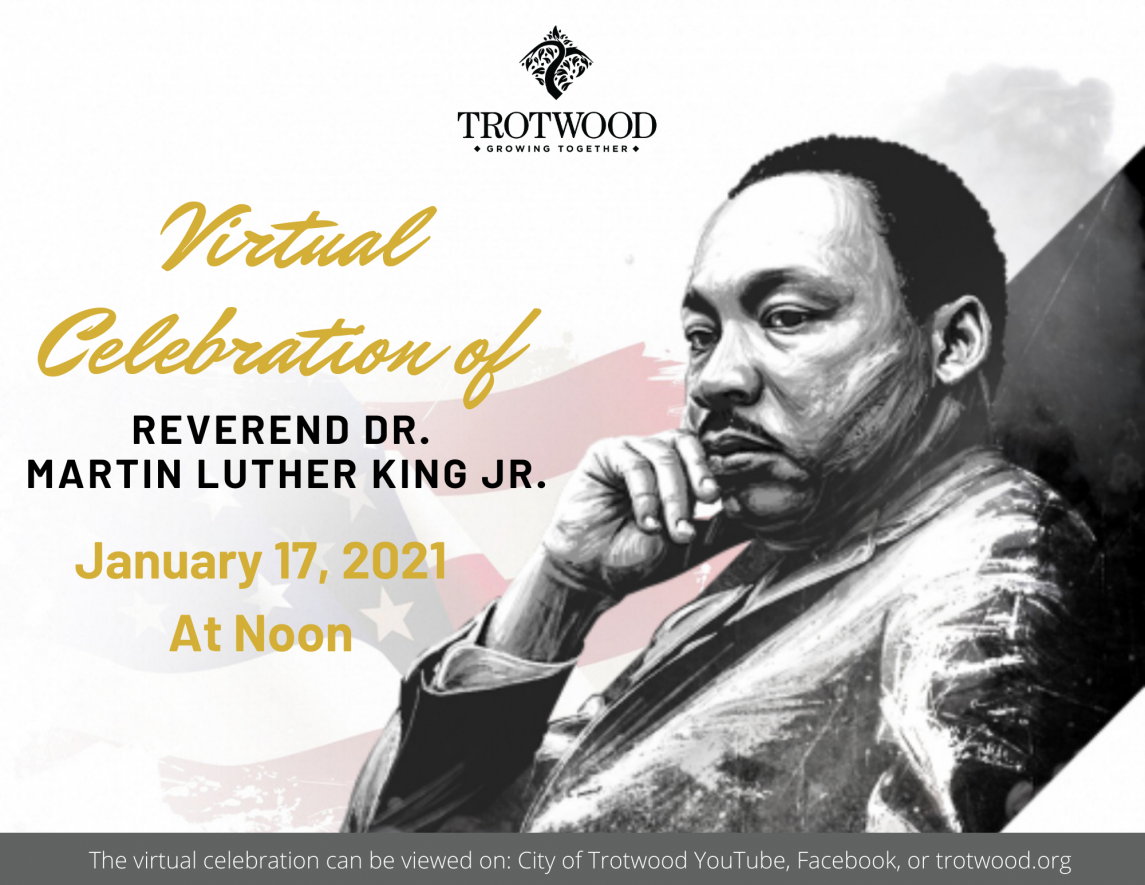 The City of Trotwood would like to invite the community to watch the City’s virtual recognition of Reverend Dr. Martin Luther King Jr. on Sunday, January 17, 2021 at 12pm. This virtual recognition will include an interview between Mayor Mary McDonald and former Dayton Mayor, Rhine McLin where they reflect on the life and legacy of Rev. Dr. Martin Luther King Jr., how politics are seen in today’s time, as well as the progress and challenges that communities have faced since the life of Dr. Martin Luther King Jr.