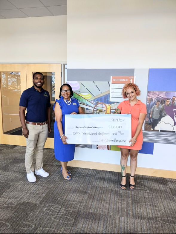 In August, we held our annual Electronic Waste Week, where residents recycled an impressive 4,254 lbs of electronics, helping to divert these materials from landfills. This afternoon, Mayor Page and our Parks & Recreation Coordinator, Charles Wheeler III, visited Dayton Children’s Hospital to present a donation made possible by your recycling efforts. Thank you for helping our community and the environment!