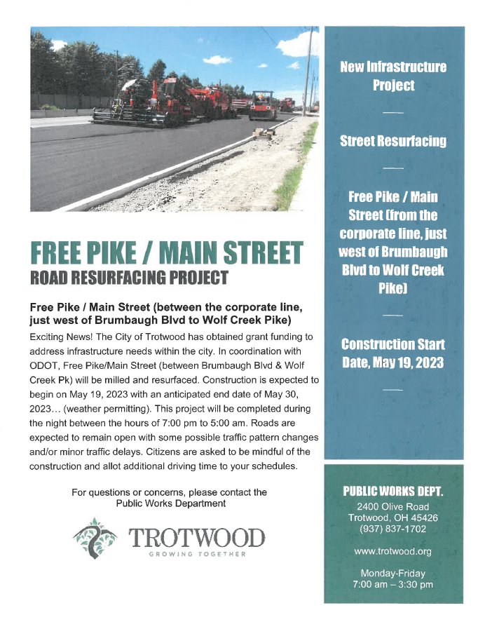 For questions or concerns, please contact the Public Works Department at 937-837-1702