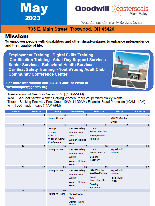 GESMV – West Campus May 2023 Calendar