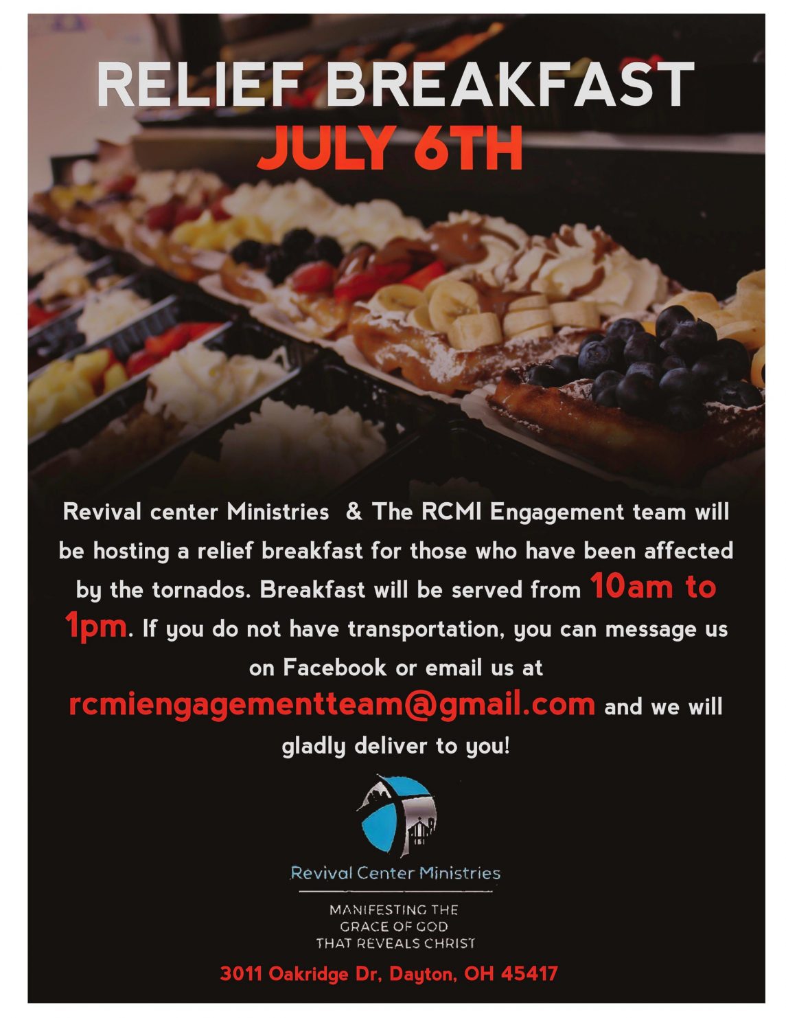 Revival Center Ministries Relief Breakfast – July 6, 2019 catapult July 2, 2019Community News < Prev PostBack to NewsNext Post > Share this Post